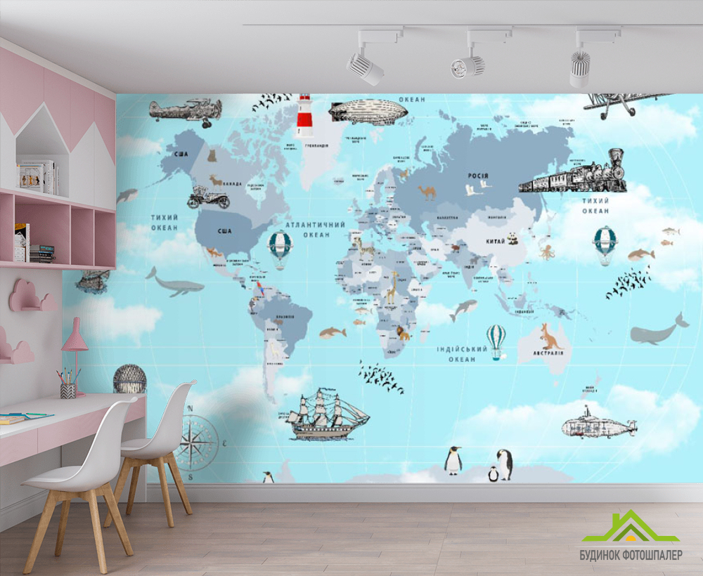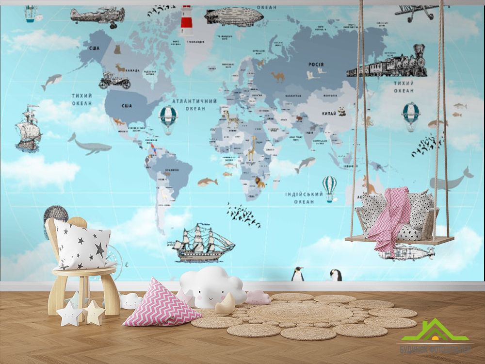 Фотошпалери блакитна карта дитяча українською Фотошпалери блакитна карта дитяча українською