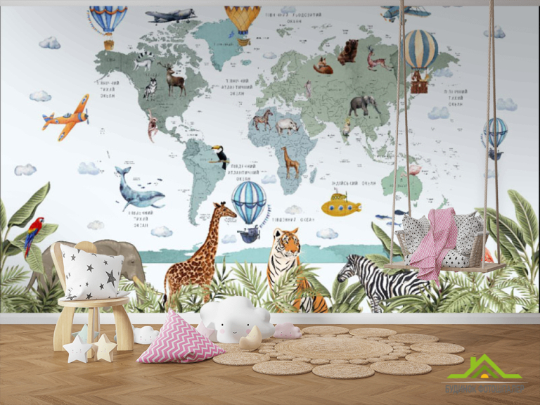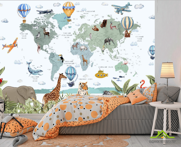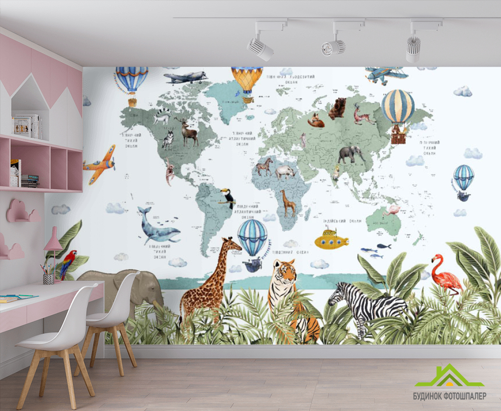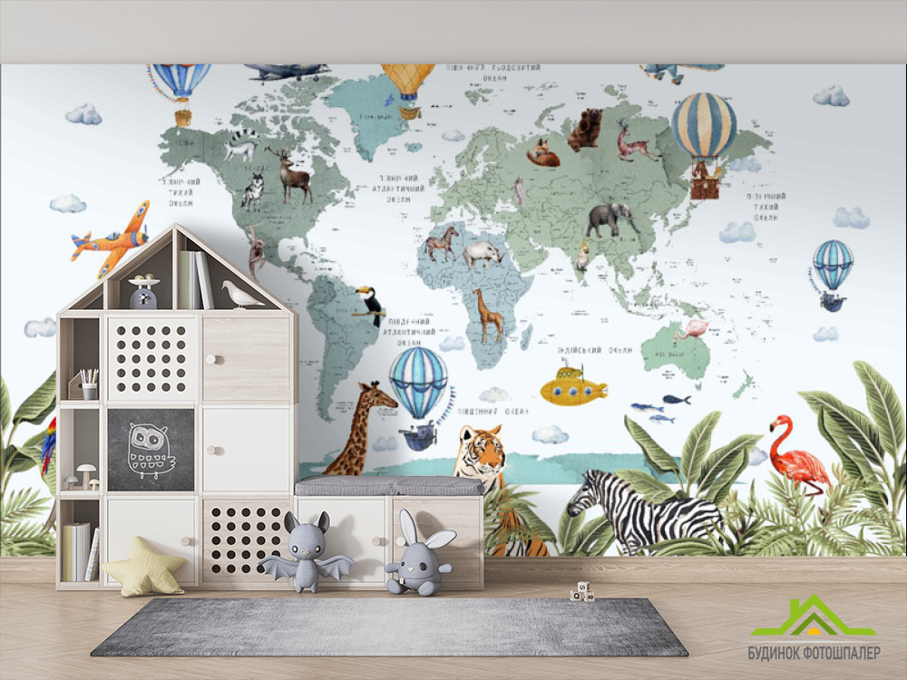 Фотошпалери Карта дитяча українською і тварини Фотошпалери Карта дитяча українською і тварини
