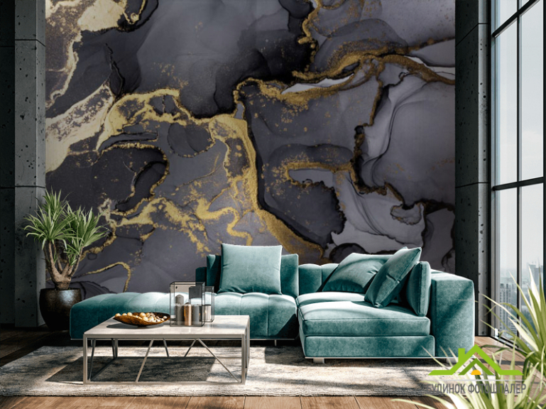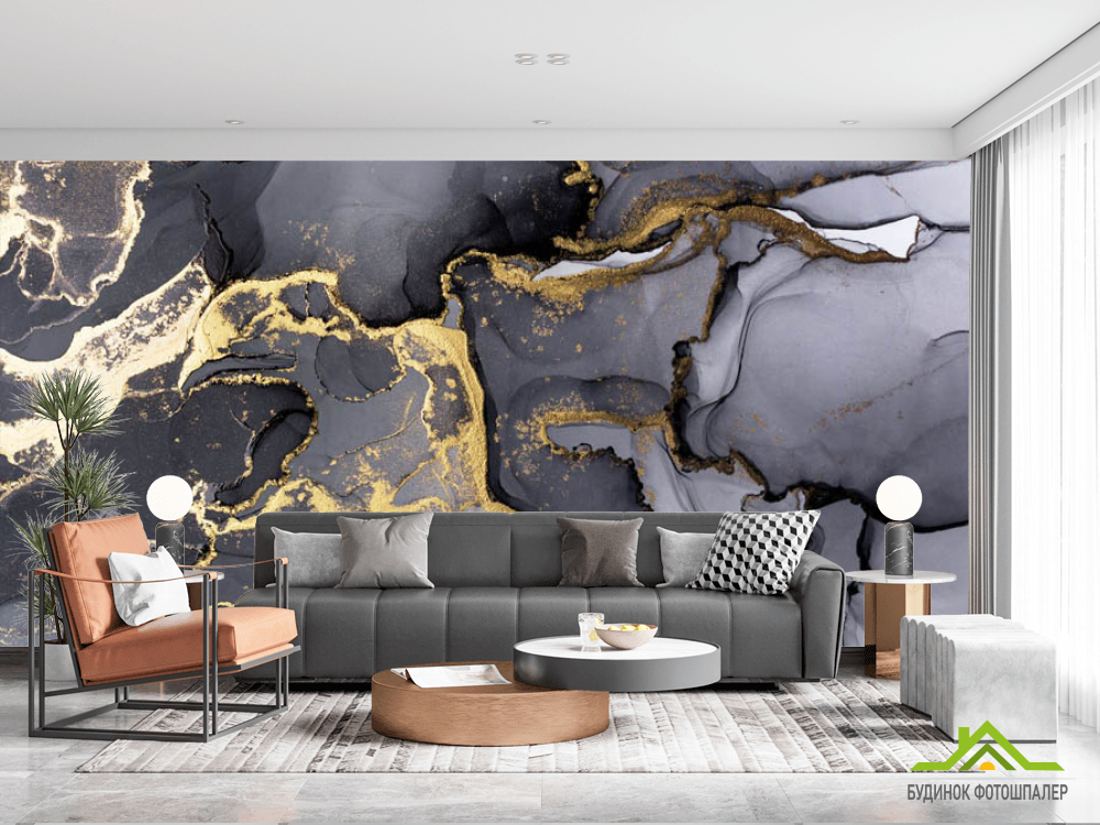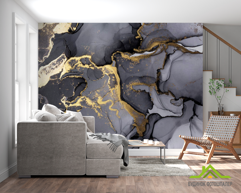 Фотошпалери Сірий флюїд з золотом Фотошпалери Сірий флюїд з золотом