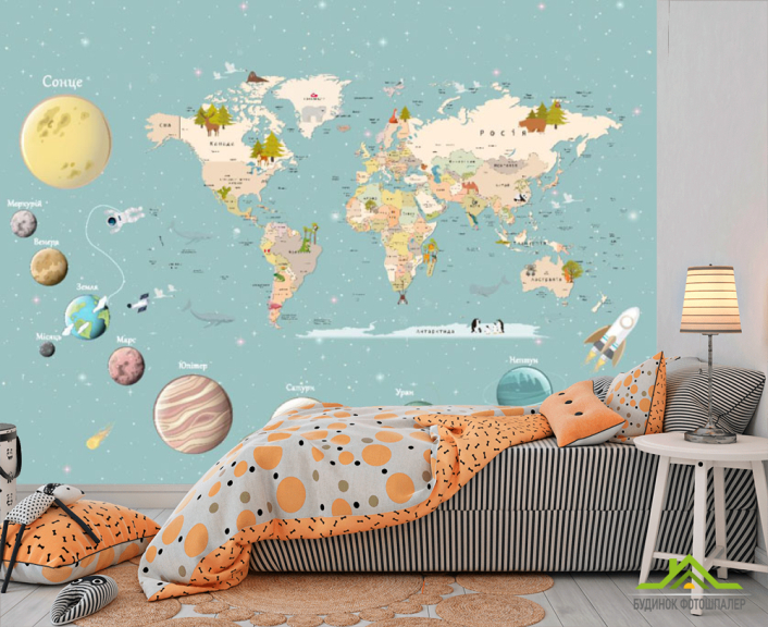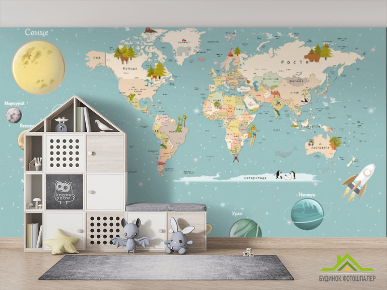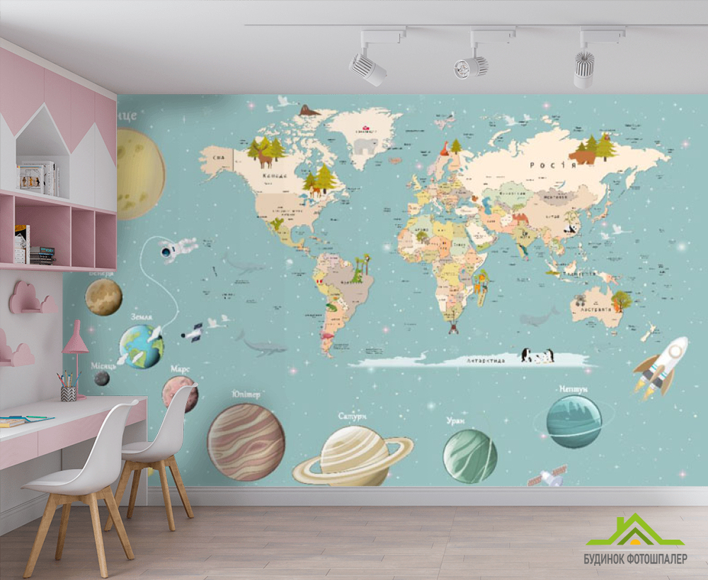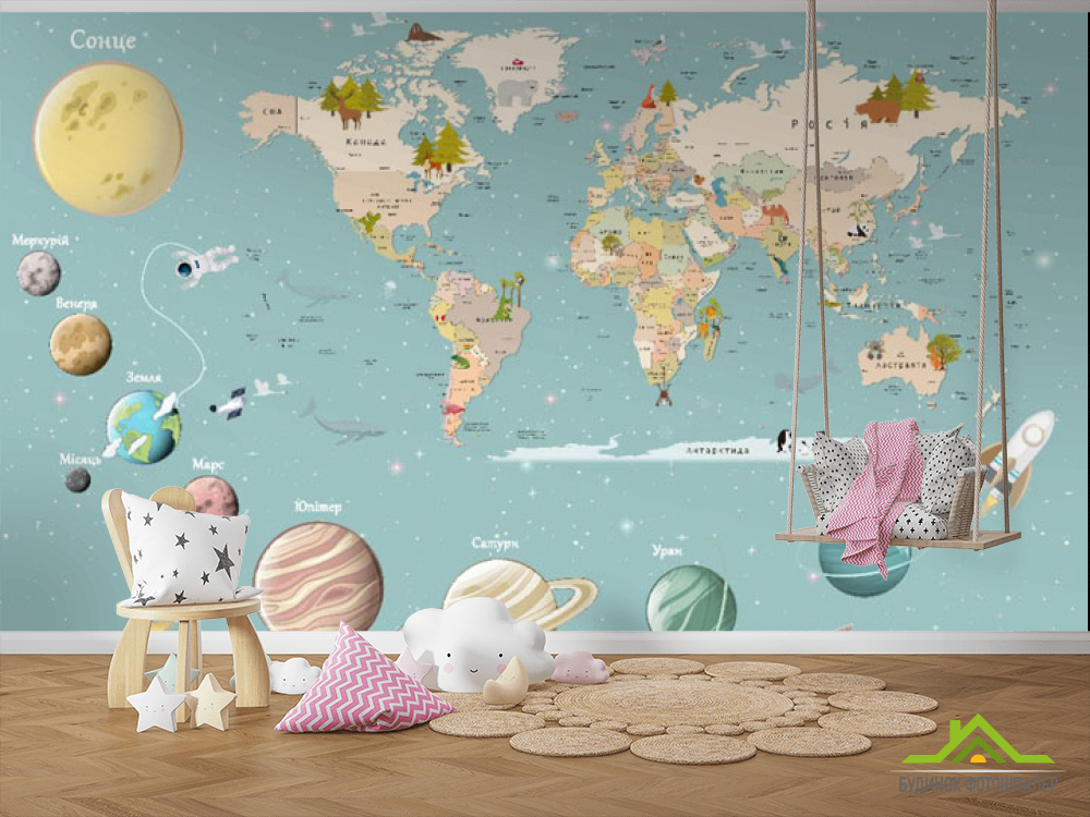 Фотошпалери Дитяча карта українською з планетами Фотошпалери Дитяча карта українською з планетами