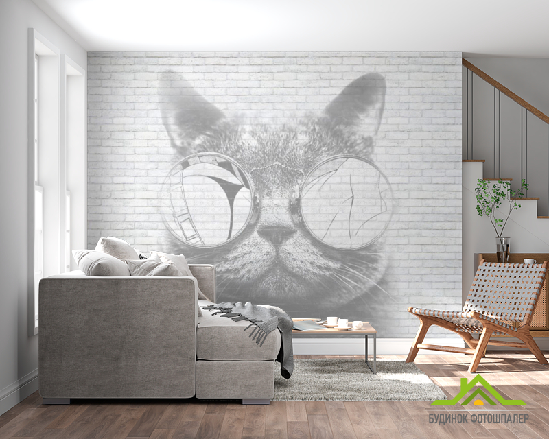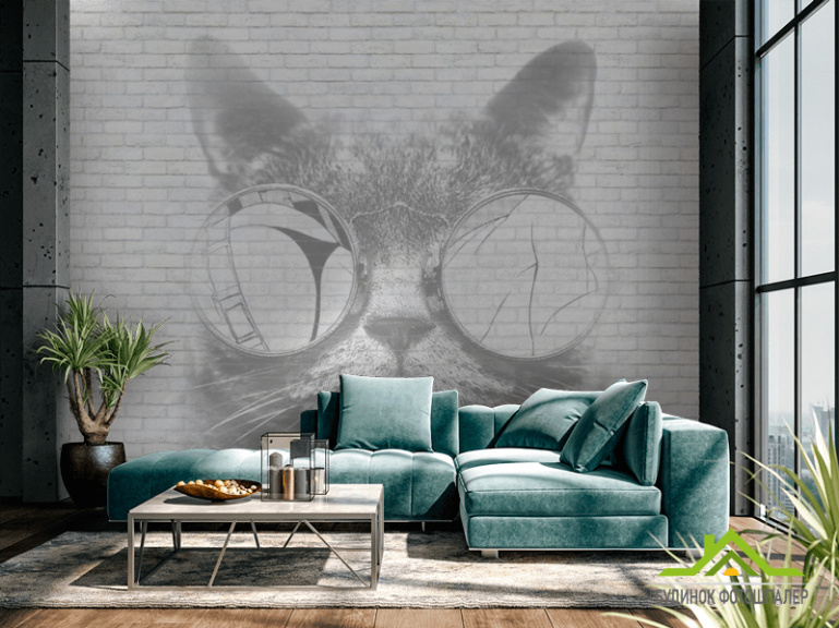 Фотошпалери Кіт в окулярах лофт Фотошпалери Кіт в окулярах лофт