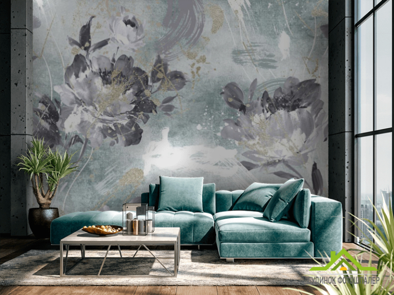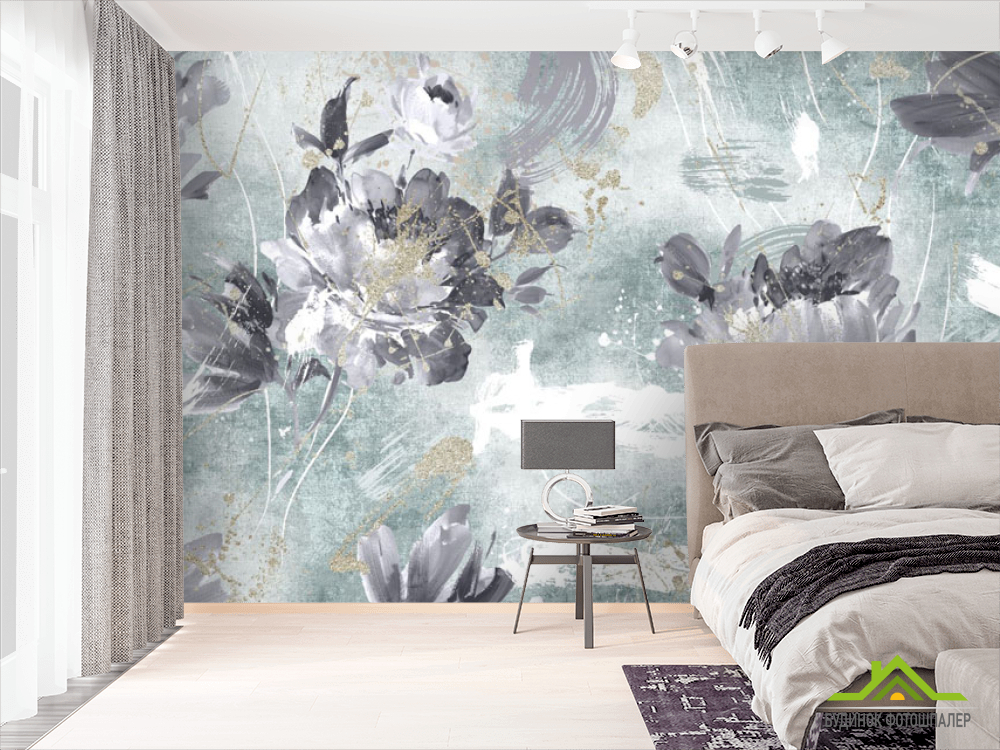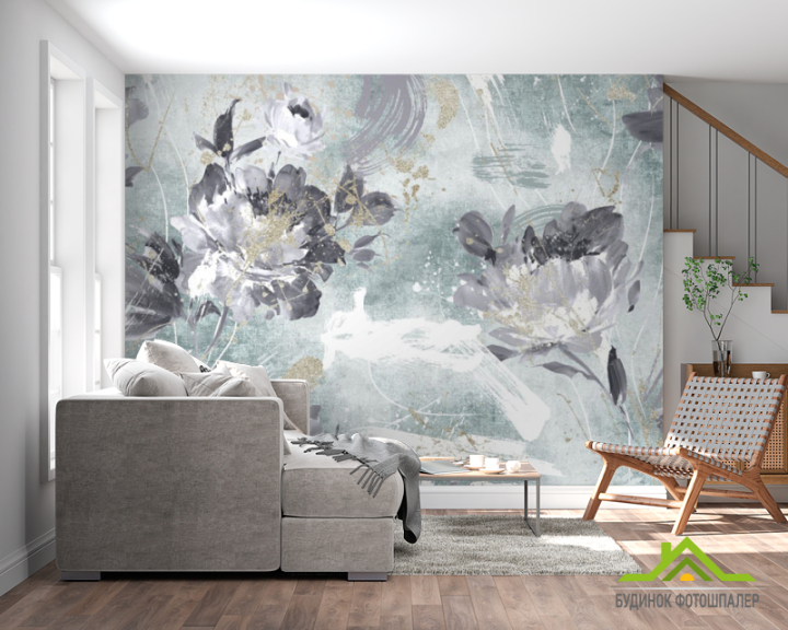 Фотошпалери дизайнерські квіти з бірюзовим золотом. Фотошпалери дизайнерські квіти з бірюзовим золотом.