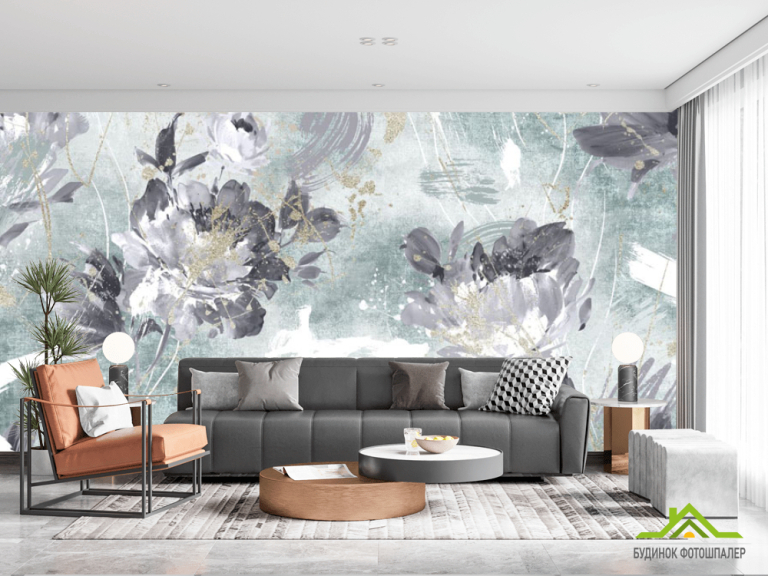 Фотошпалери дизайнерські квіти з бірюзовим золотом.