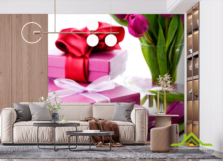 Фотошпалери Тюльпани, подарунки, кава