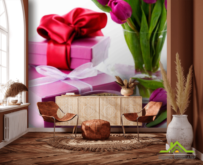 Фотошпалери Тюльпани, подарунки, кава Фотошпалери Тюльпани, подарунки, кава