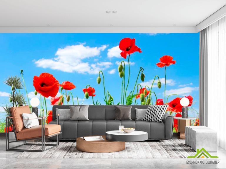 Фотошпалери Маки в степу