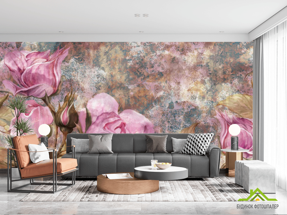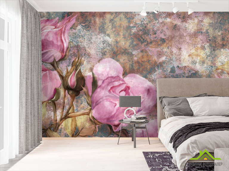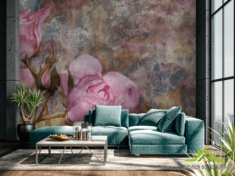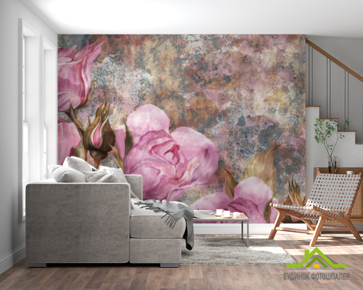 Фотошпалери Рожеві троянди Мальовані Фотошпалери Рожеві троянди Мальовані