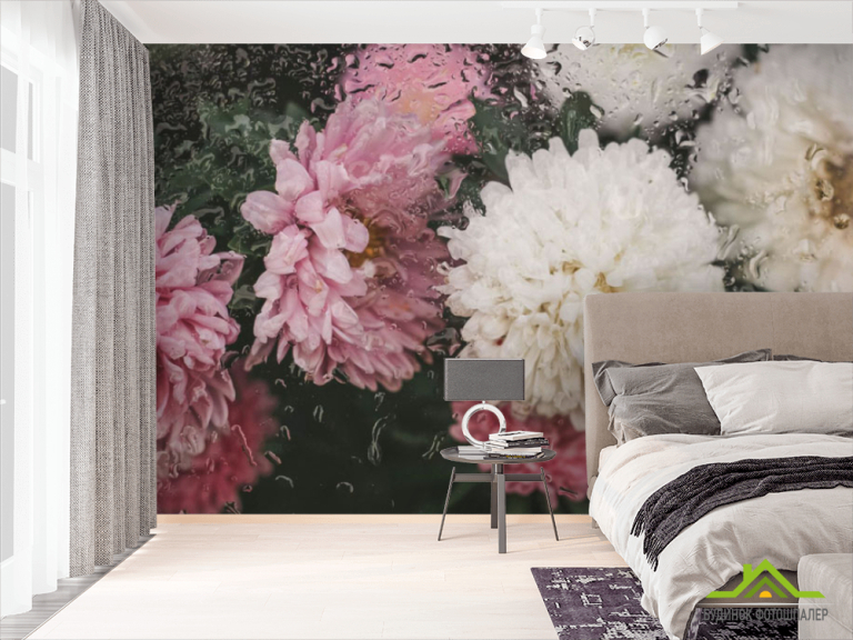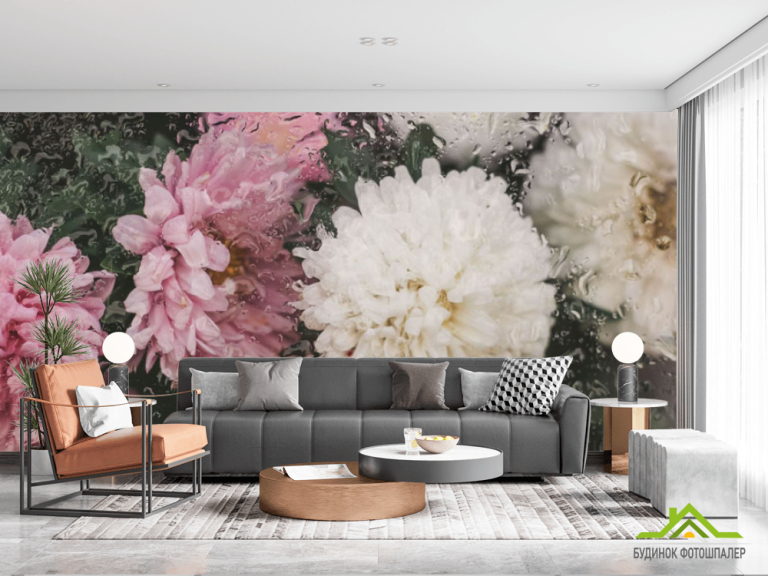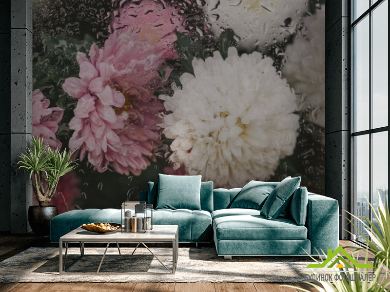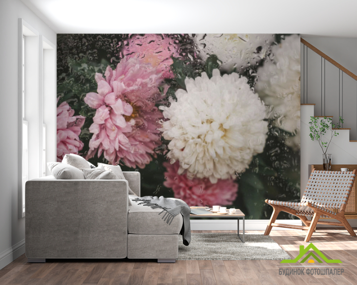 Фотошпалери Хризантеми з краплями дощу Фотошпалери Хризантеми з краплями дощу