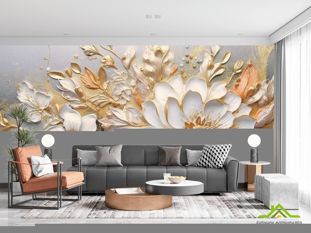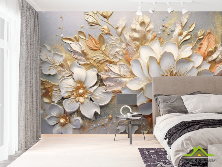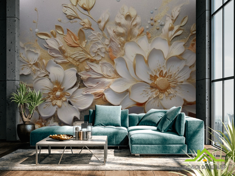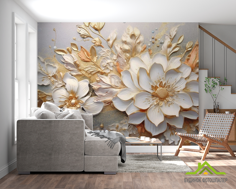 Фотошпалери 3Д квіти золоті