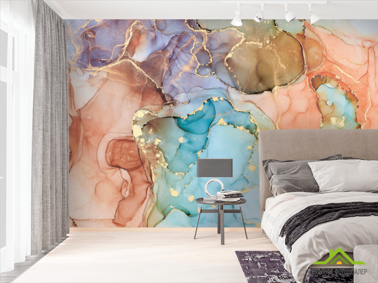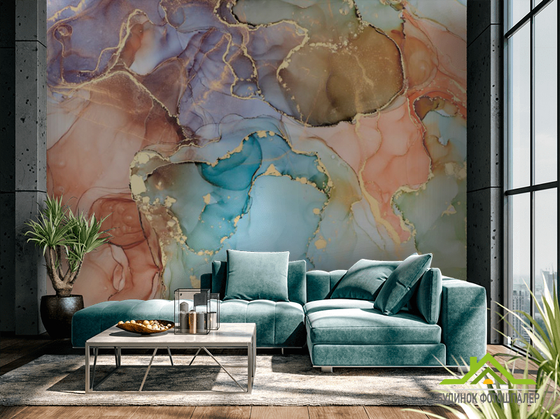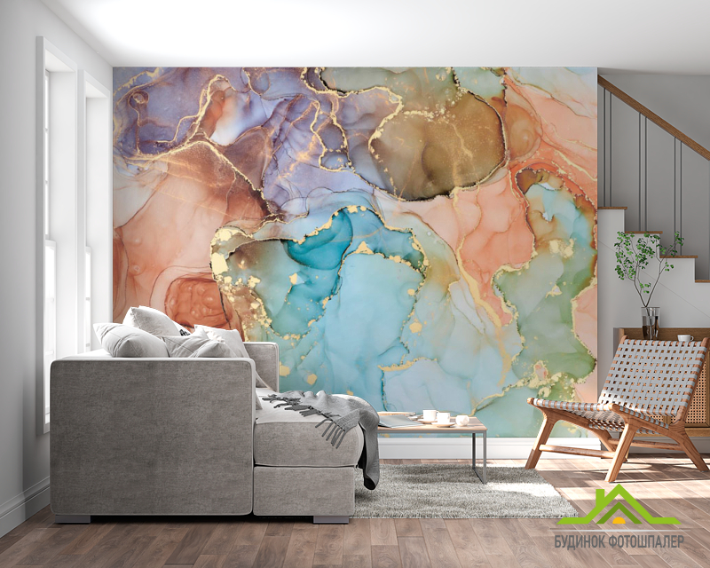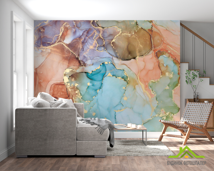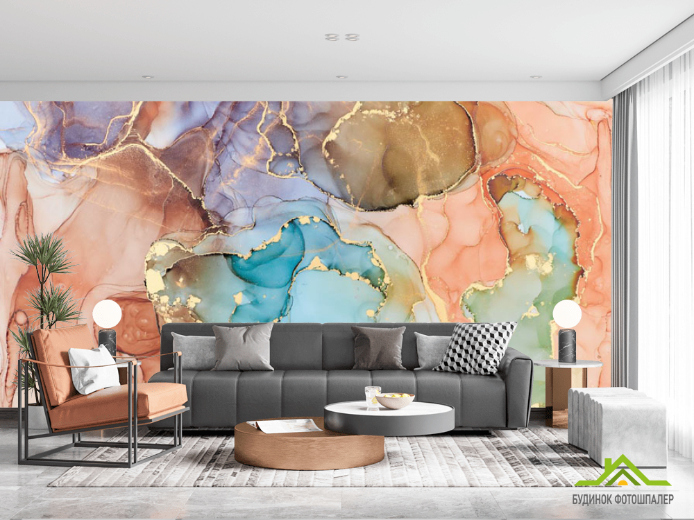 Фотошпалери кольоровий флюїд з золотом Фотошпалери кольоровий флюїд з золотом