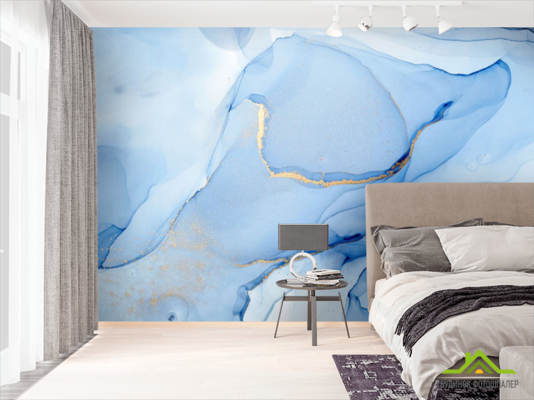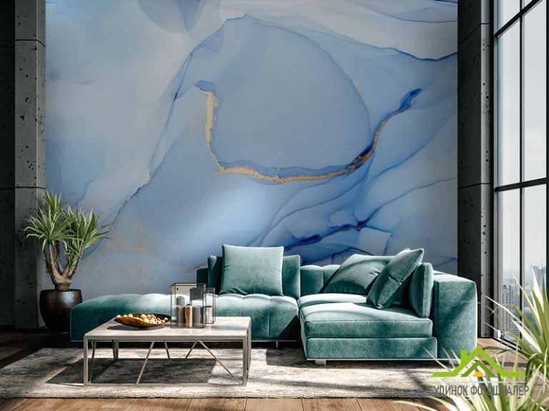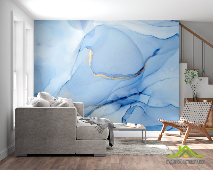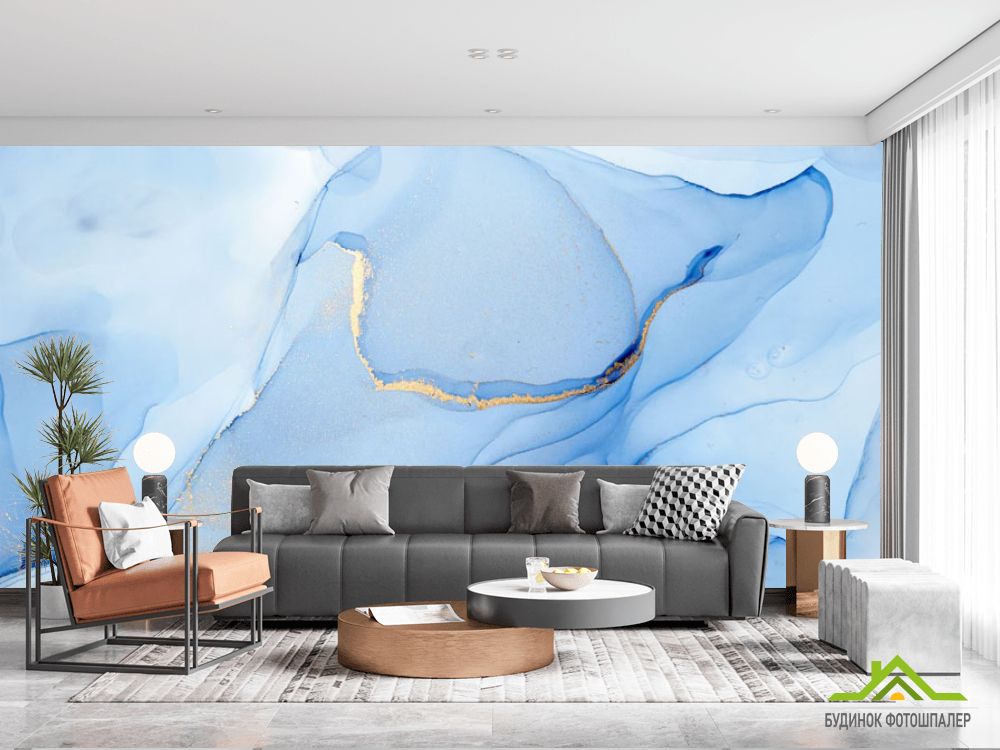 Фотошпалери Блакитний флюїд з золотом Фотошпалери Блакитний флюїд з золотом