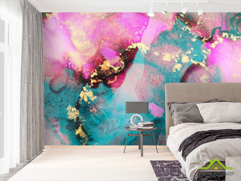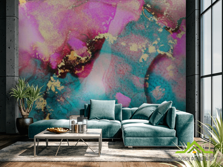 Фотошпалери бірюзово-рожевий флюїд з золотом Фотошпалери бірюзово-рожевий флюїд з золотом