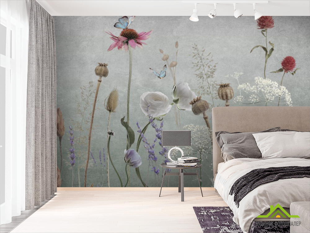 Фотошпалери польові дизайнерські квіти сірі