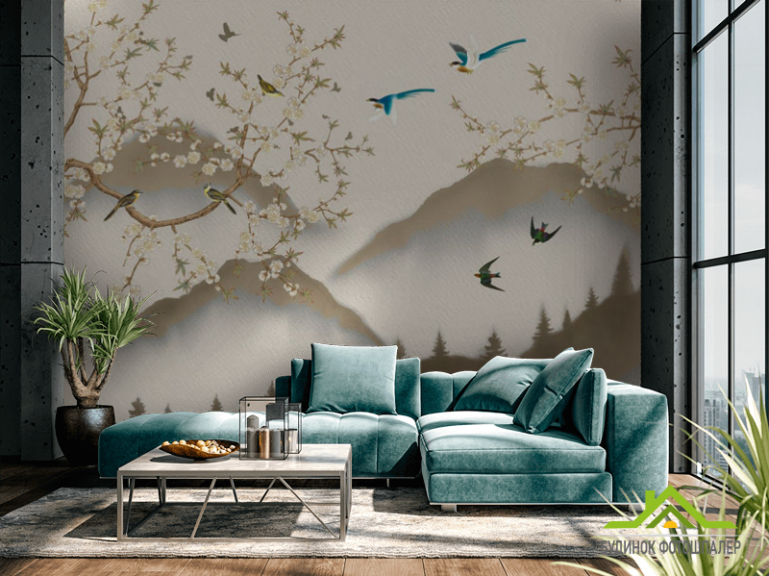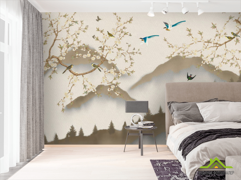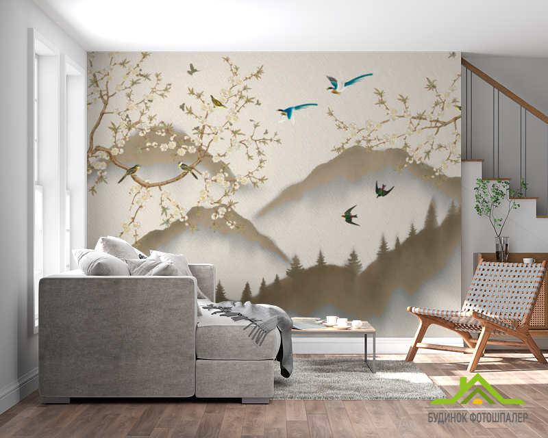 Фотошпалери гори гілки в японському стилі Фотошпалери гори гілки в японському стилі