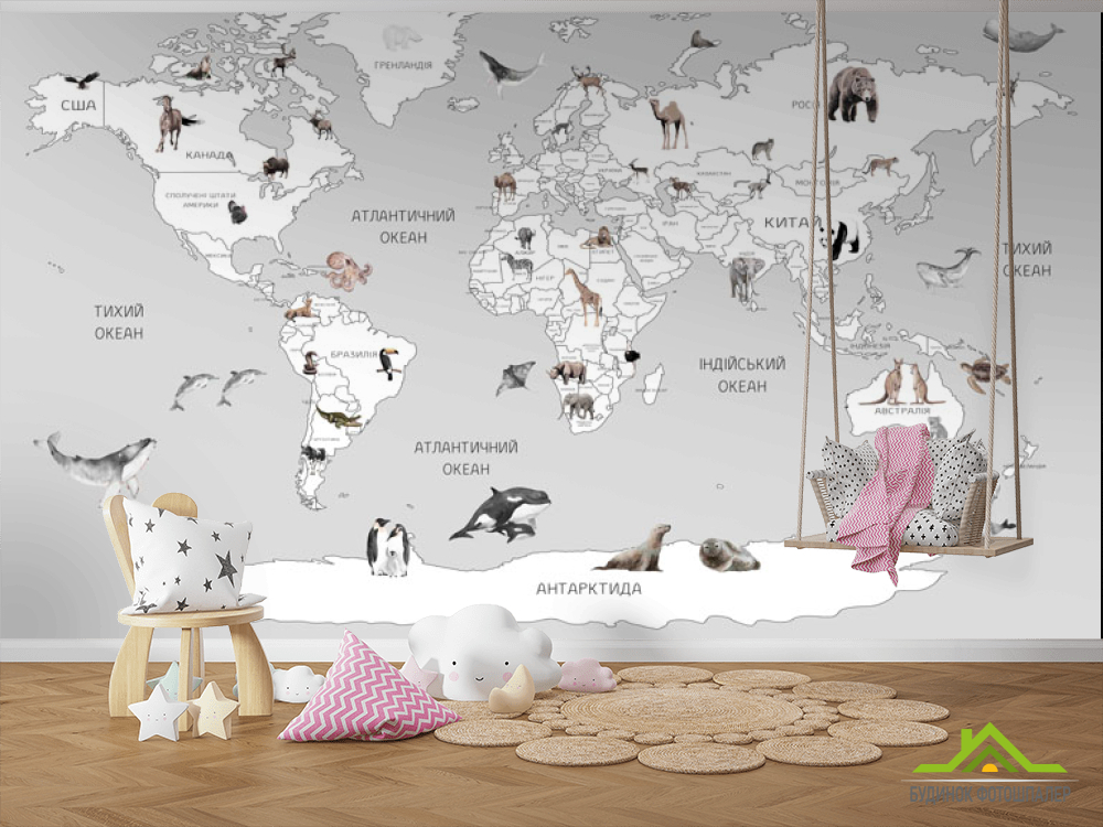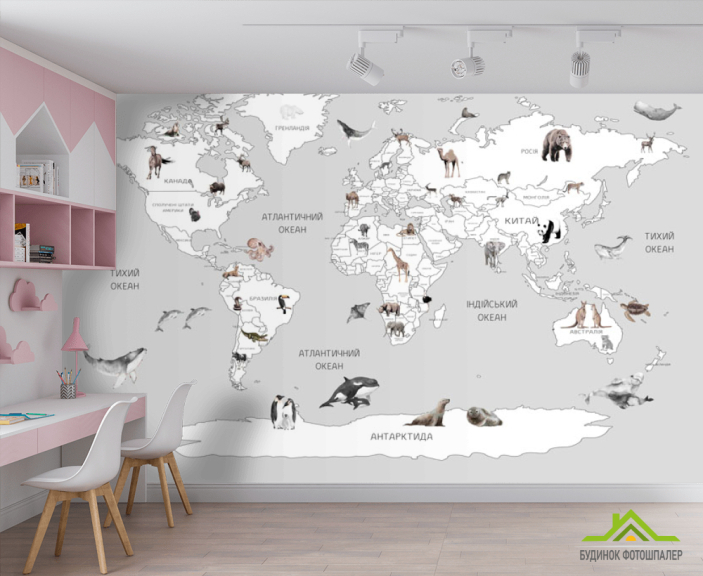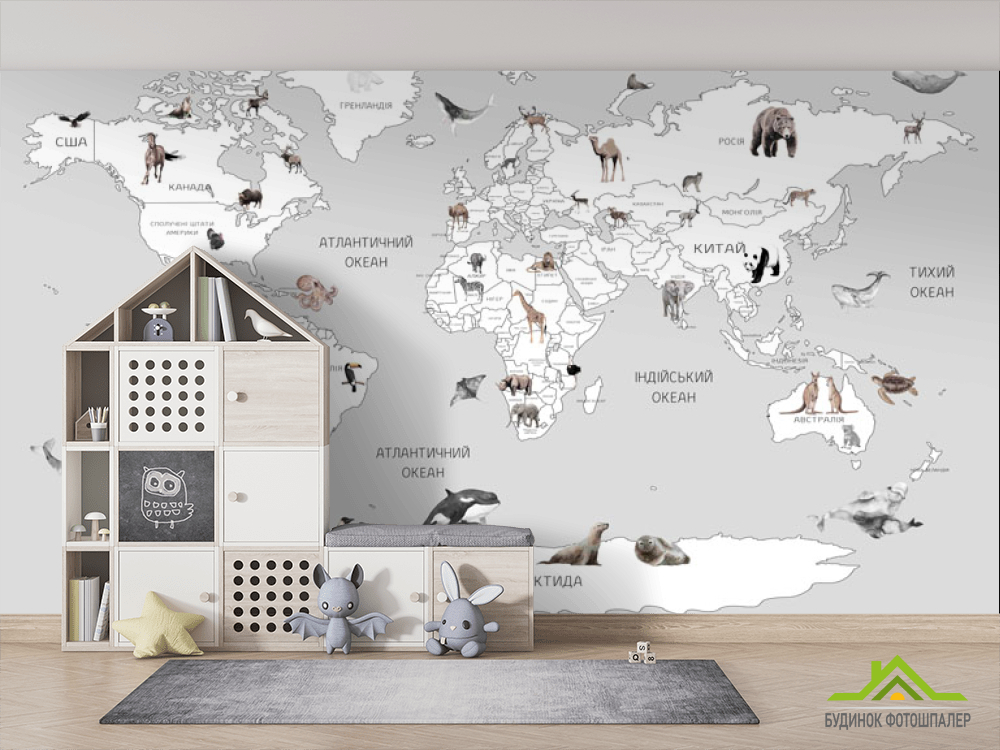 Фотошпалери сіра карта з тваринами Фотошпалери сіра карта з тваринами