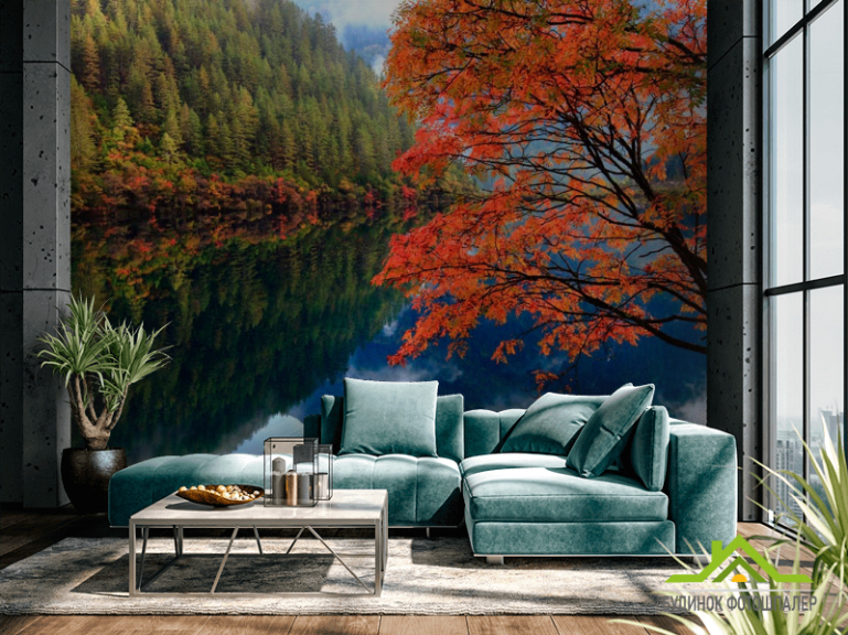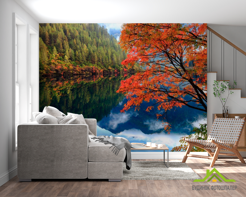Фотошпалери Відображення, ліс, вода Фотошпалери Відображення, ліс, вода