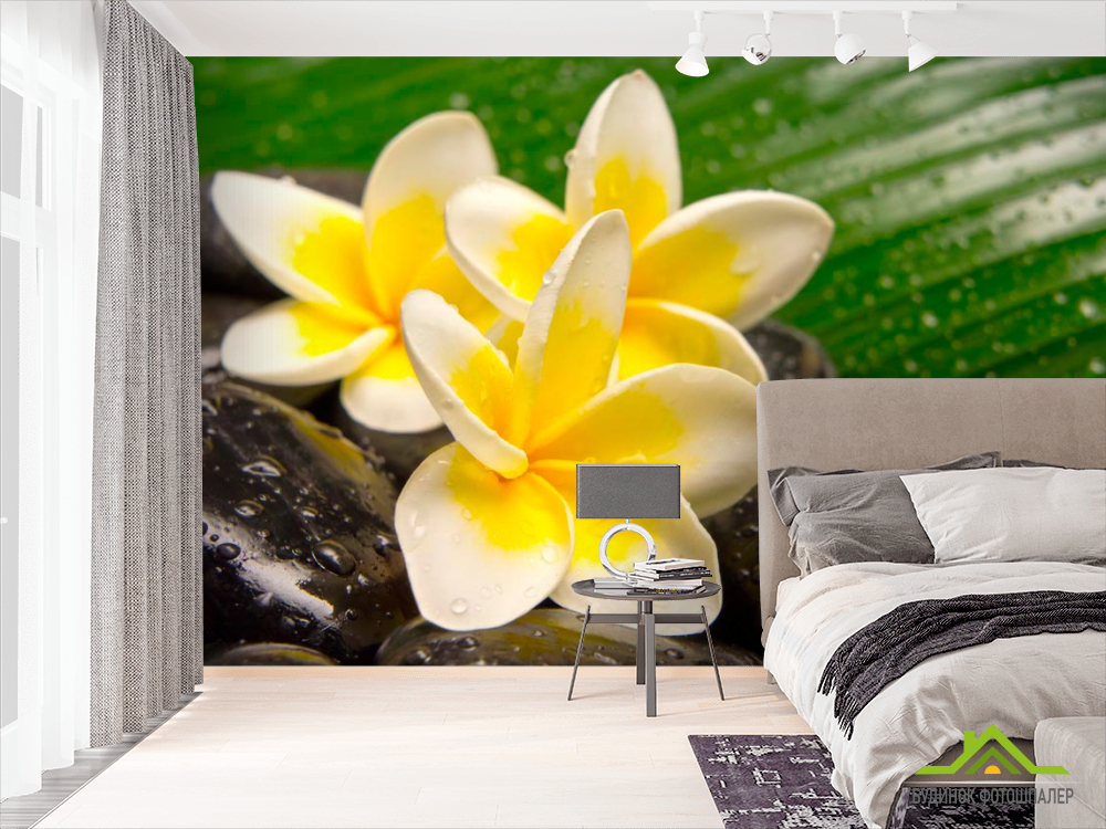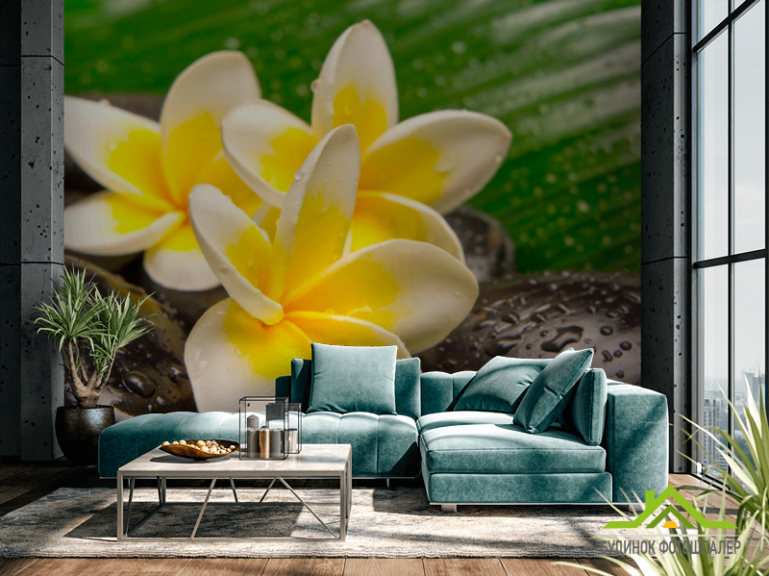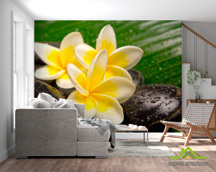 Фотошпалери Квіти, каміння, роса Фотошпалери Квіти, каміння, роса