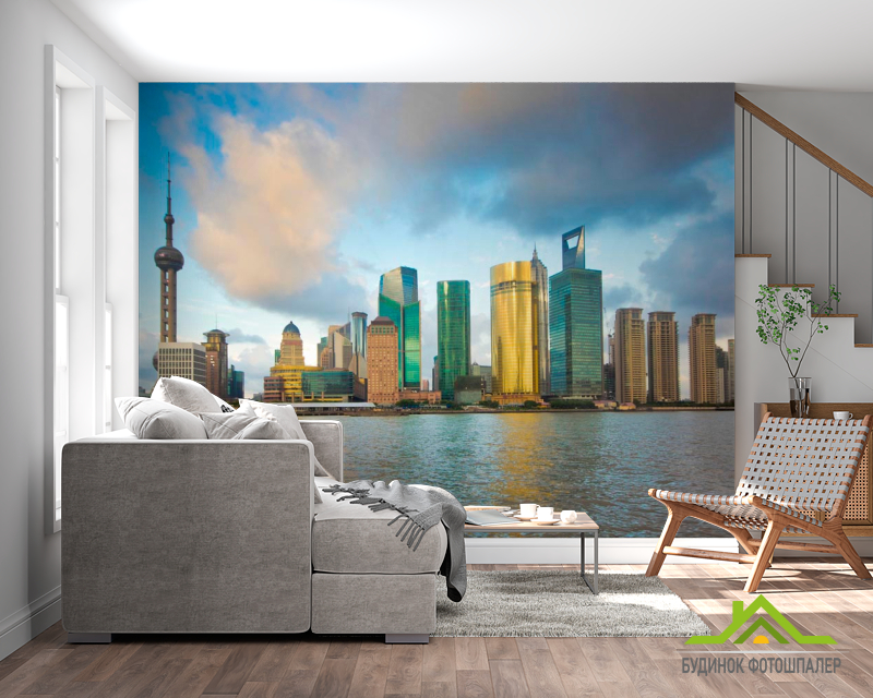 Фотошпалери Хмари, море, будинки Фотошпалери Хмари, море, будинки