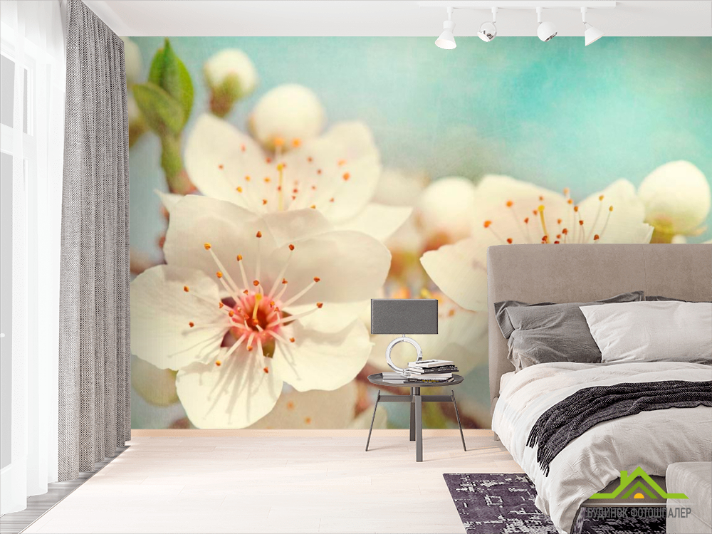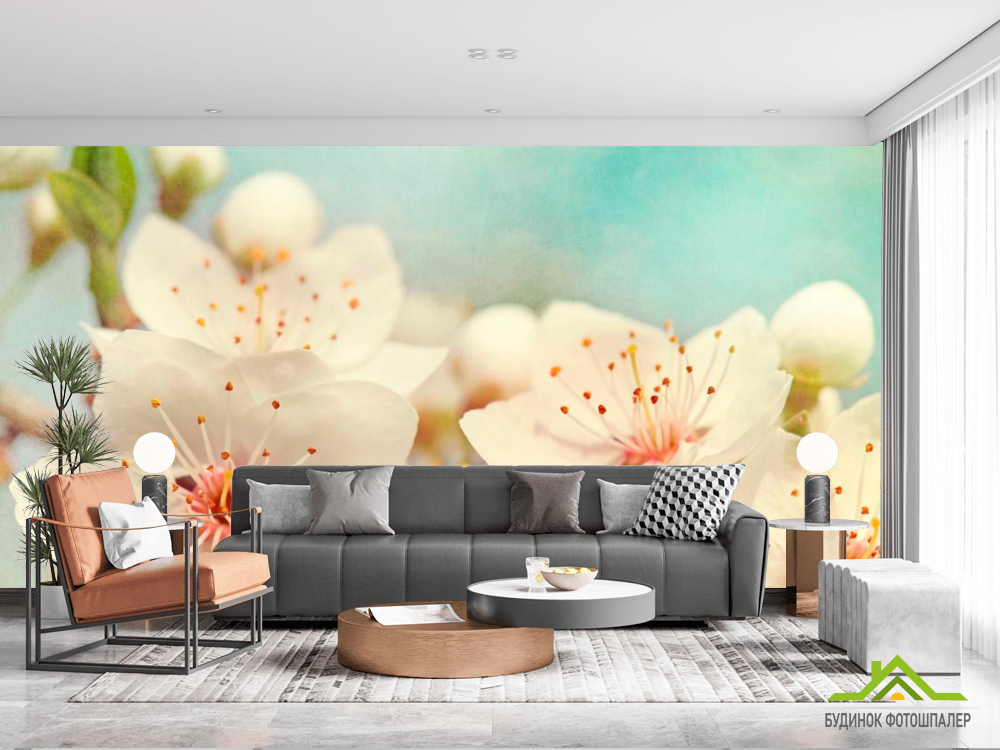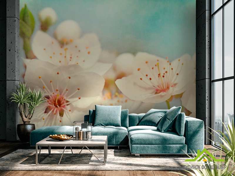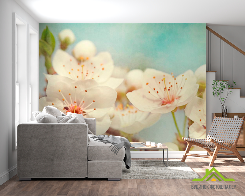 Фотошпалери Суцвіття квітів черешні Фотошпалери Суцвіття квітів черешні