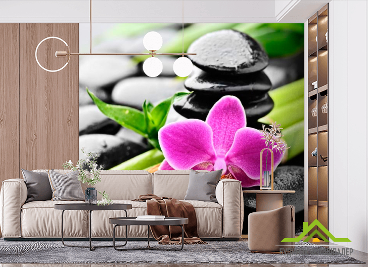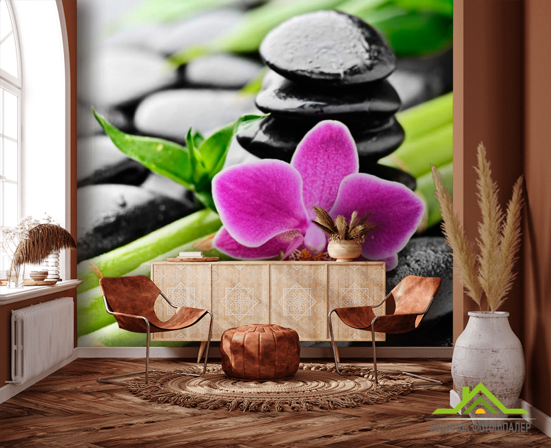 Фотошпалери Бамбук, каміння, орхідея Фотошпалери Бамбук, каміння, орхідея