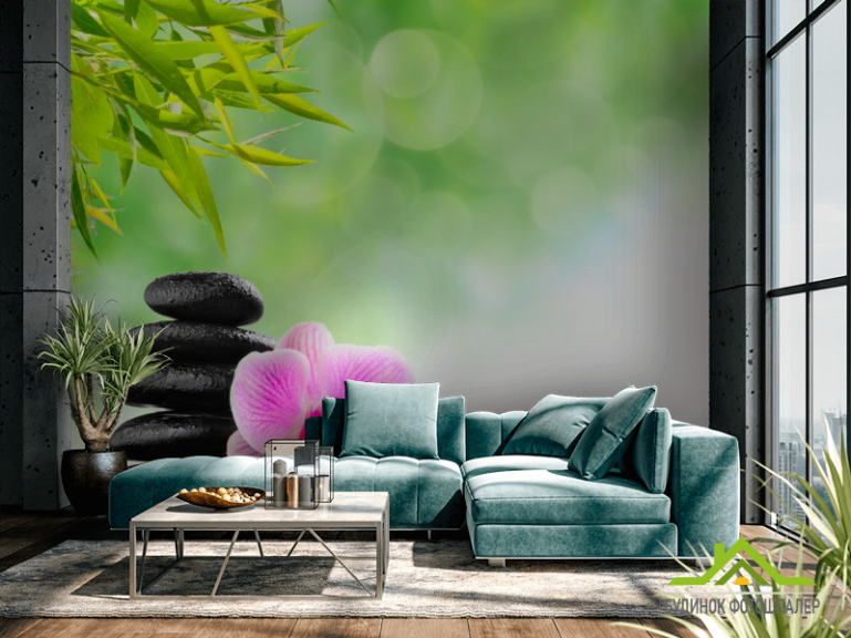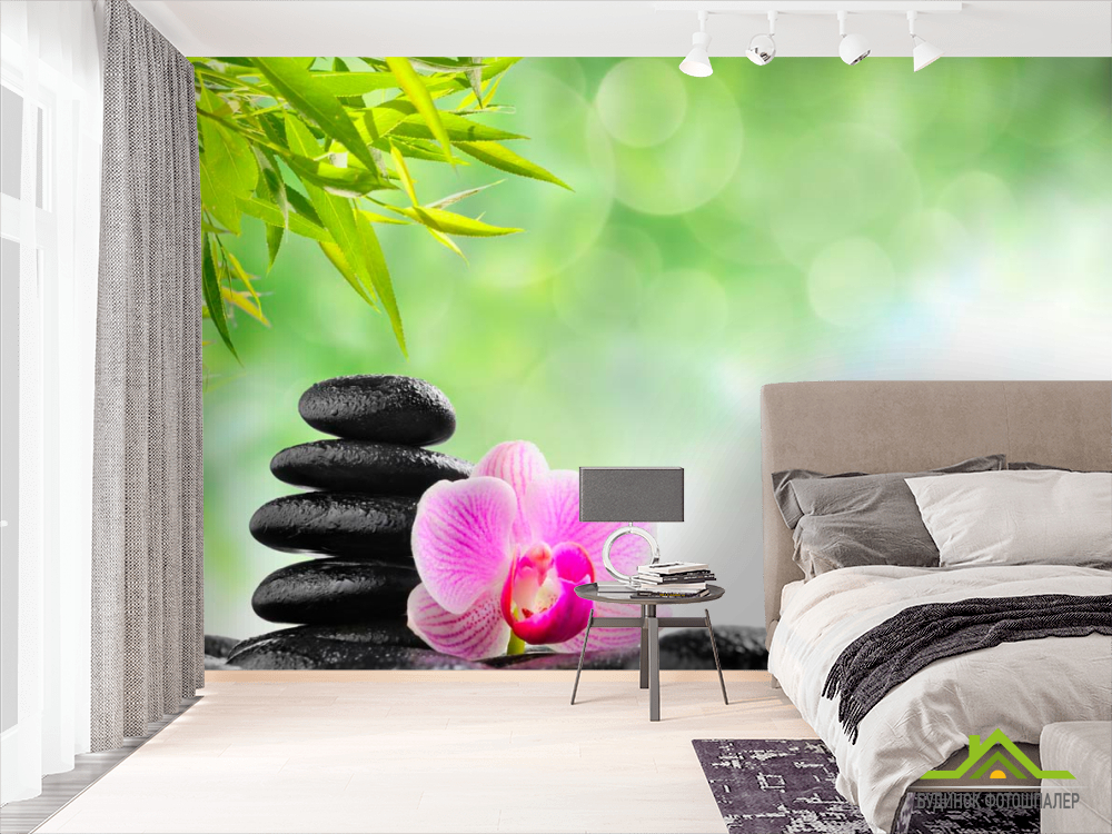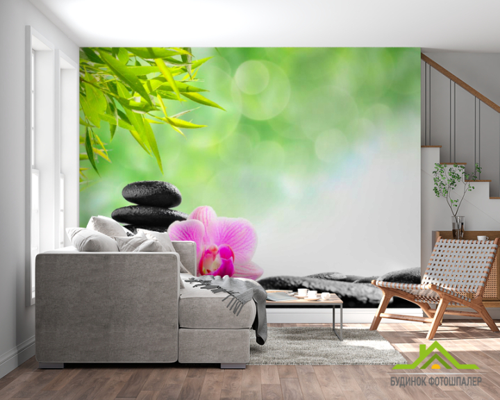 Фотошпалери Орхідея, зелень, камені Фотошпалери Орхідея, зелень, камені