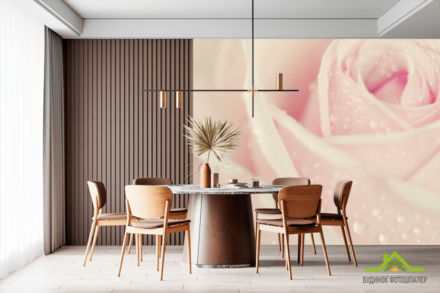 Фотошпалери Краплі роси на троянді Фотошпалери Краплі роси на троянді