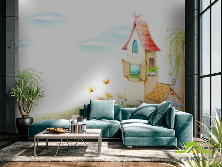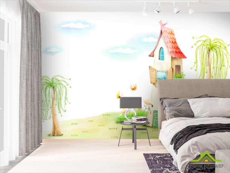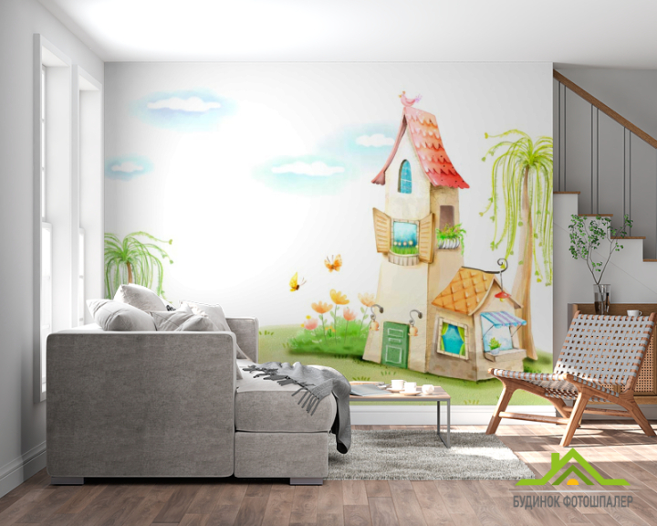 Фотошпалери Будиночок і берези Фотошпалери Будиночок і берези