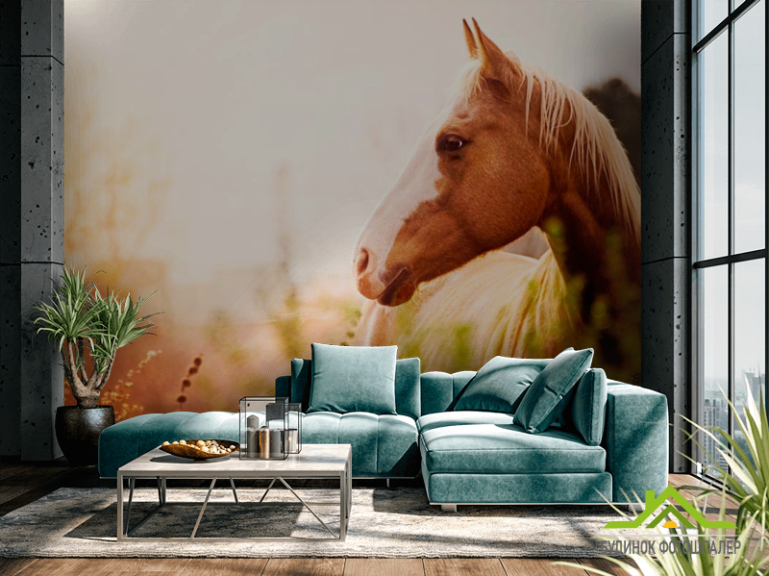Фотошпалери Кінь серед трав Фотошпалери Кінь серед трав