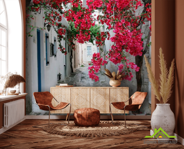 Фотошпалери Вузька вуличка з квітами Фотошпалери Вузька вуличка з квітами