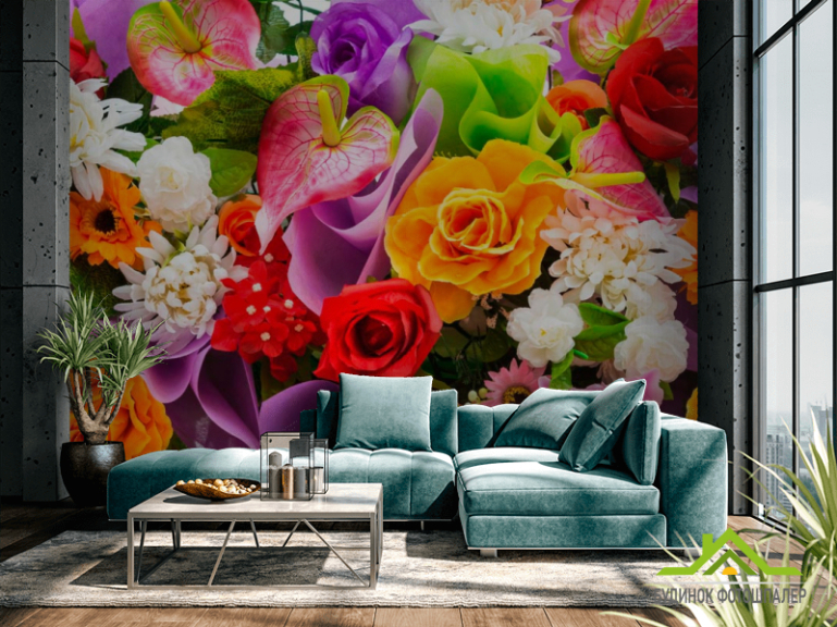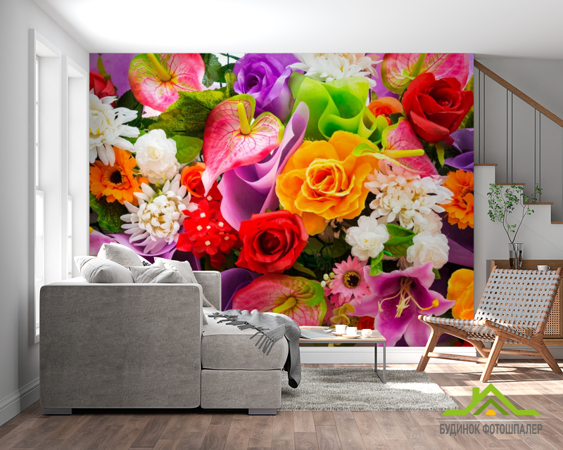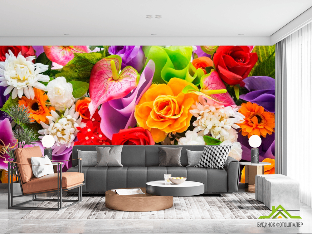 Фотошпалери Фотошпалери Яскравий букет квітів Фотошпалери Фотошпалери Яскравий букет квітів