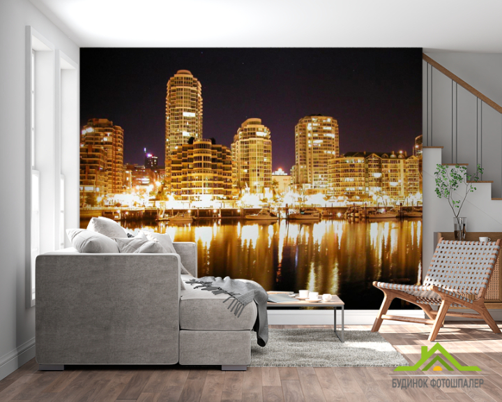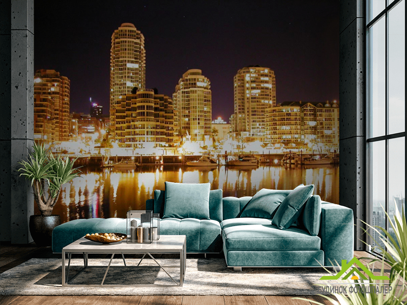 Фотошпалери Яскрава нічна набережна Фотошпалери Яскрава нічна набережна