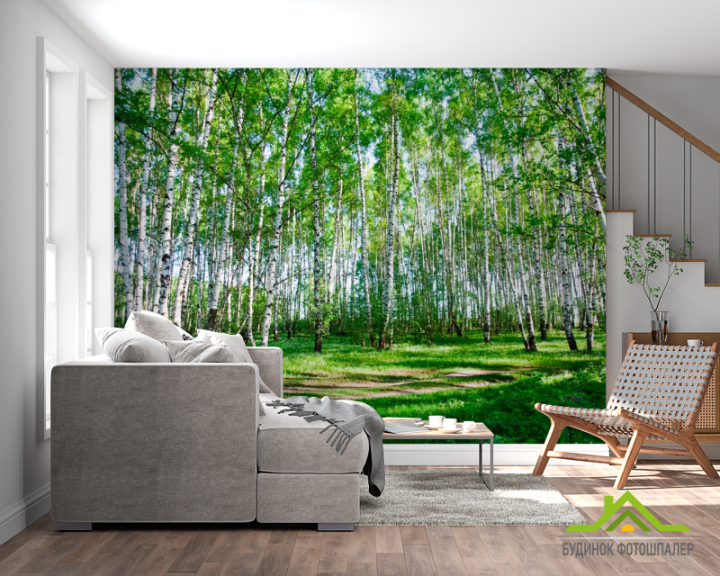 Фотошпалери Молоді берези, стежка Фотошпалери Молоді берези, стежка