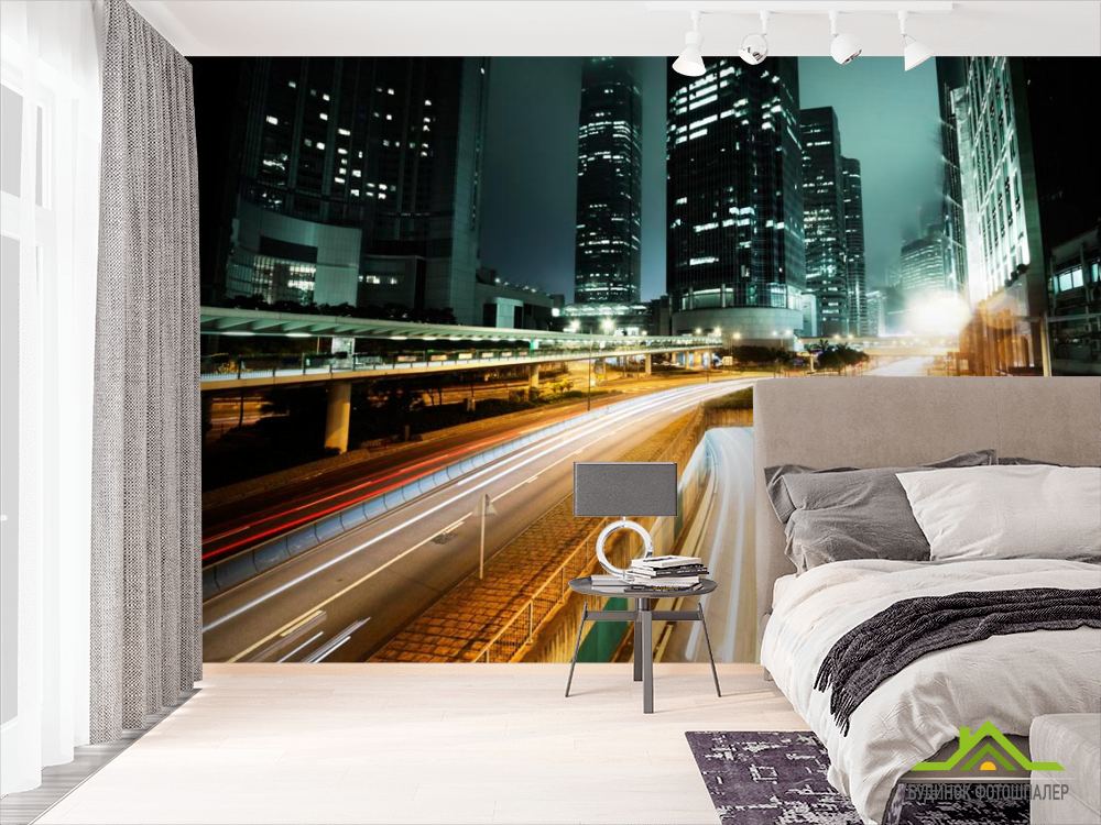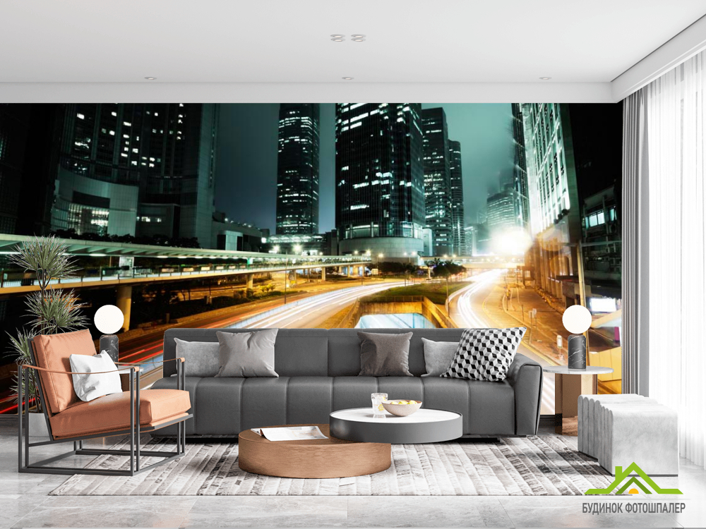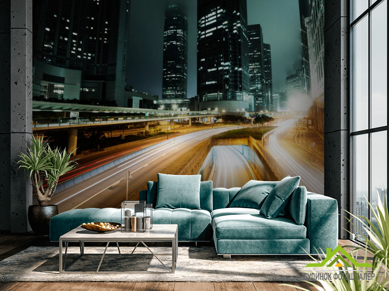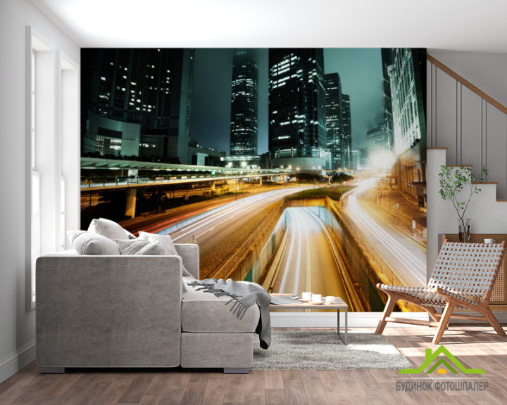 Фотошпалери Світла дорога вночі Фотошпалери Світла дорога вночі