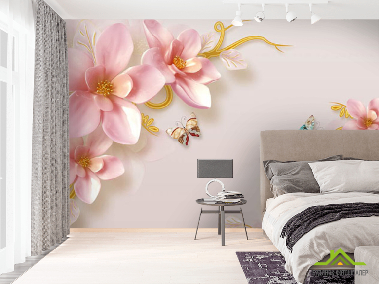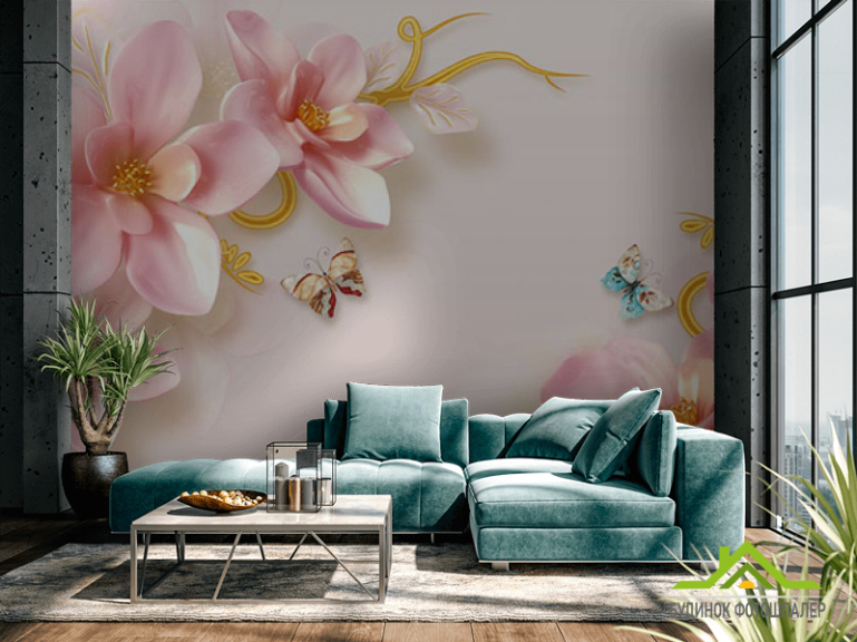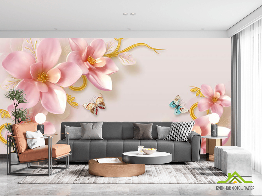 Фотошпалери Красиві квіти і метелики Фотошпалери Красиві квіти і метелики